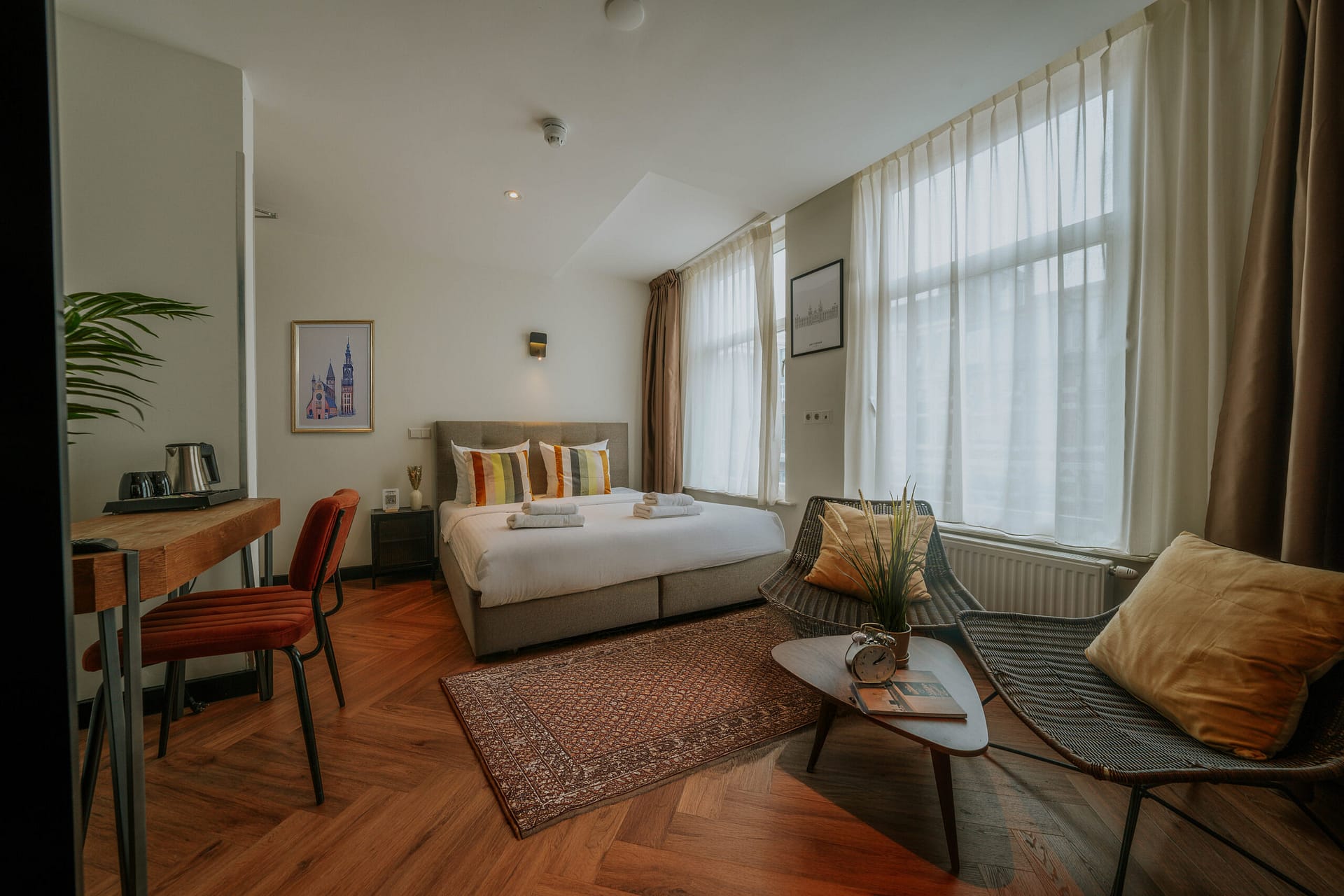 Our thoughtfully designed hotel-chic room embodies minimalist elegance, featuring sleek lines, luxurious finishes, and a serene atmosphere. Every detail is crafted with care, blending comfort…